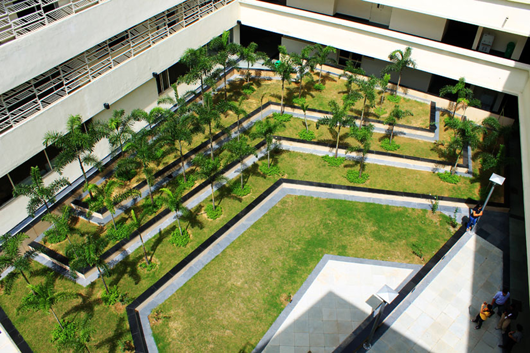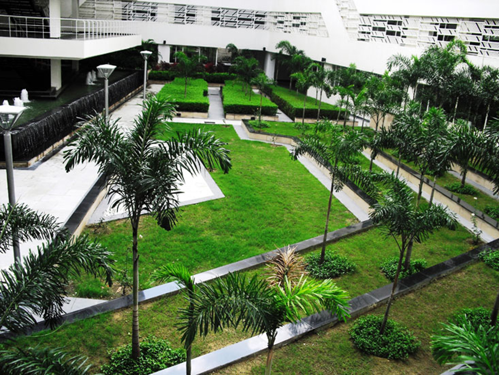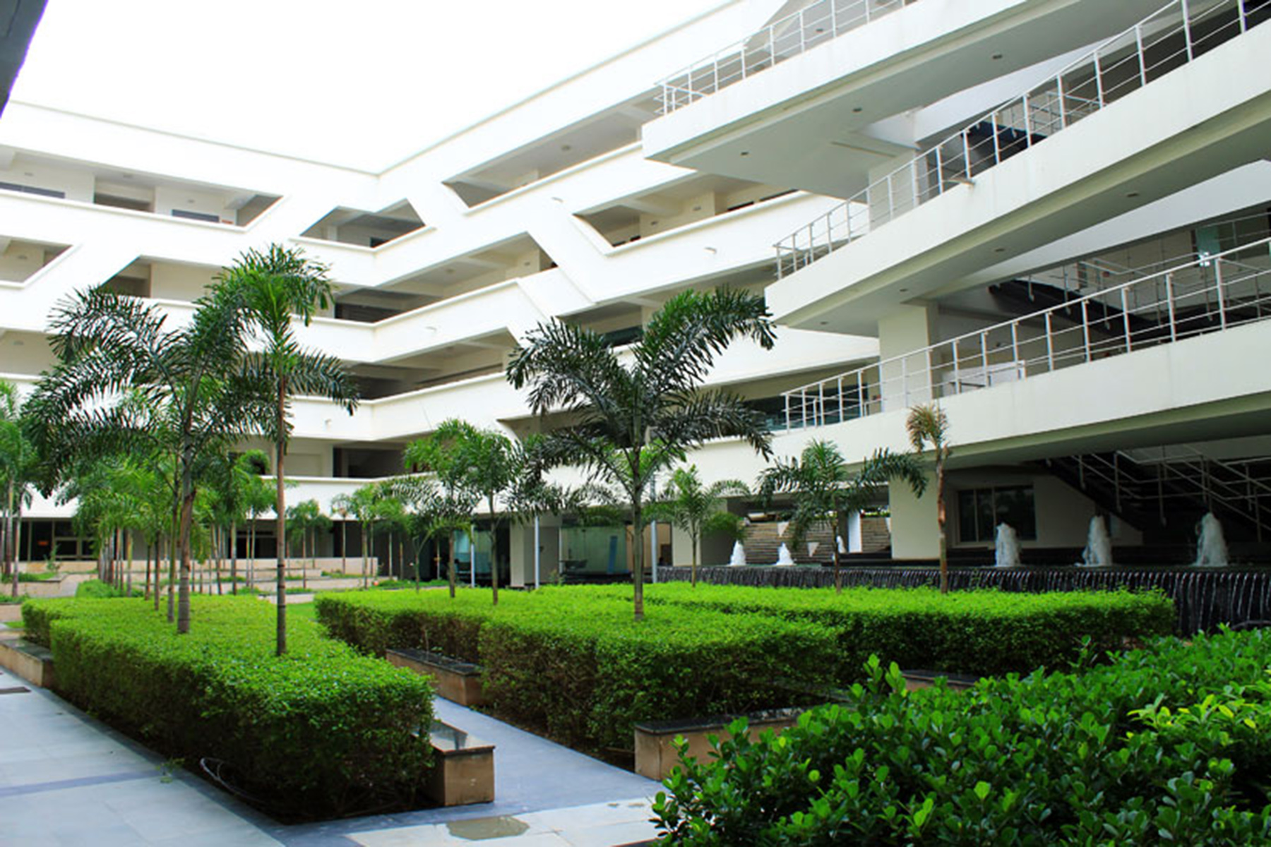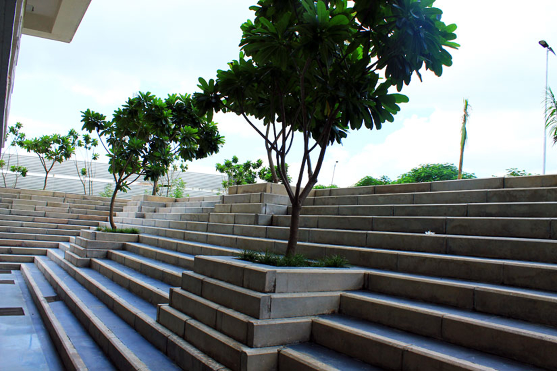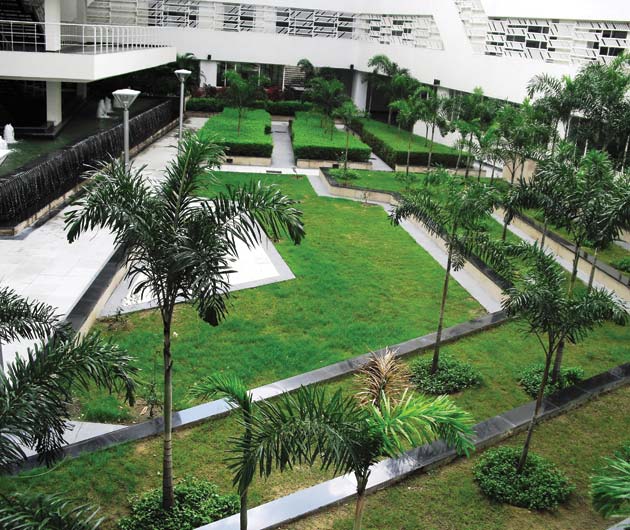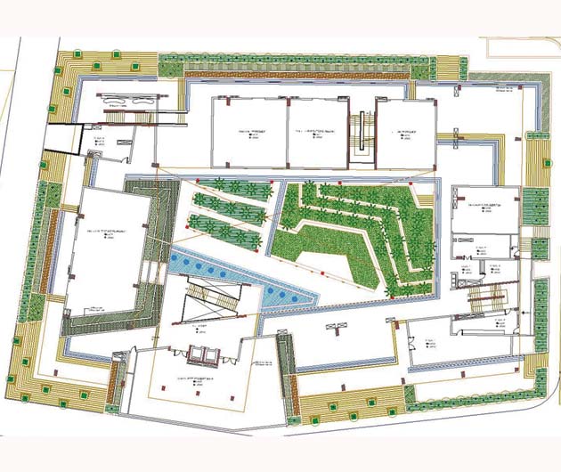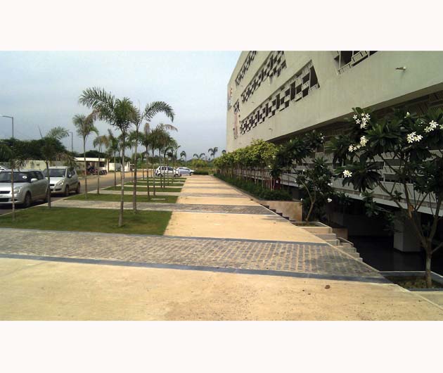 Raffles University is located about 3 km from Pari chowk, Greater Noida. This Campus is an offshoot of the Raffles University at Singapore. The architecture of the university is very stylish and contemporary. The major challenge in designing the landscape was to respond pro-actively to the architectural character. The Landscape design manages to do so in a very successful manner.